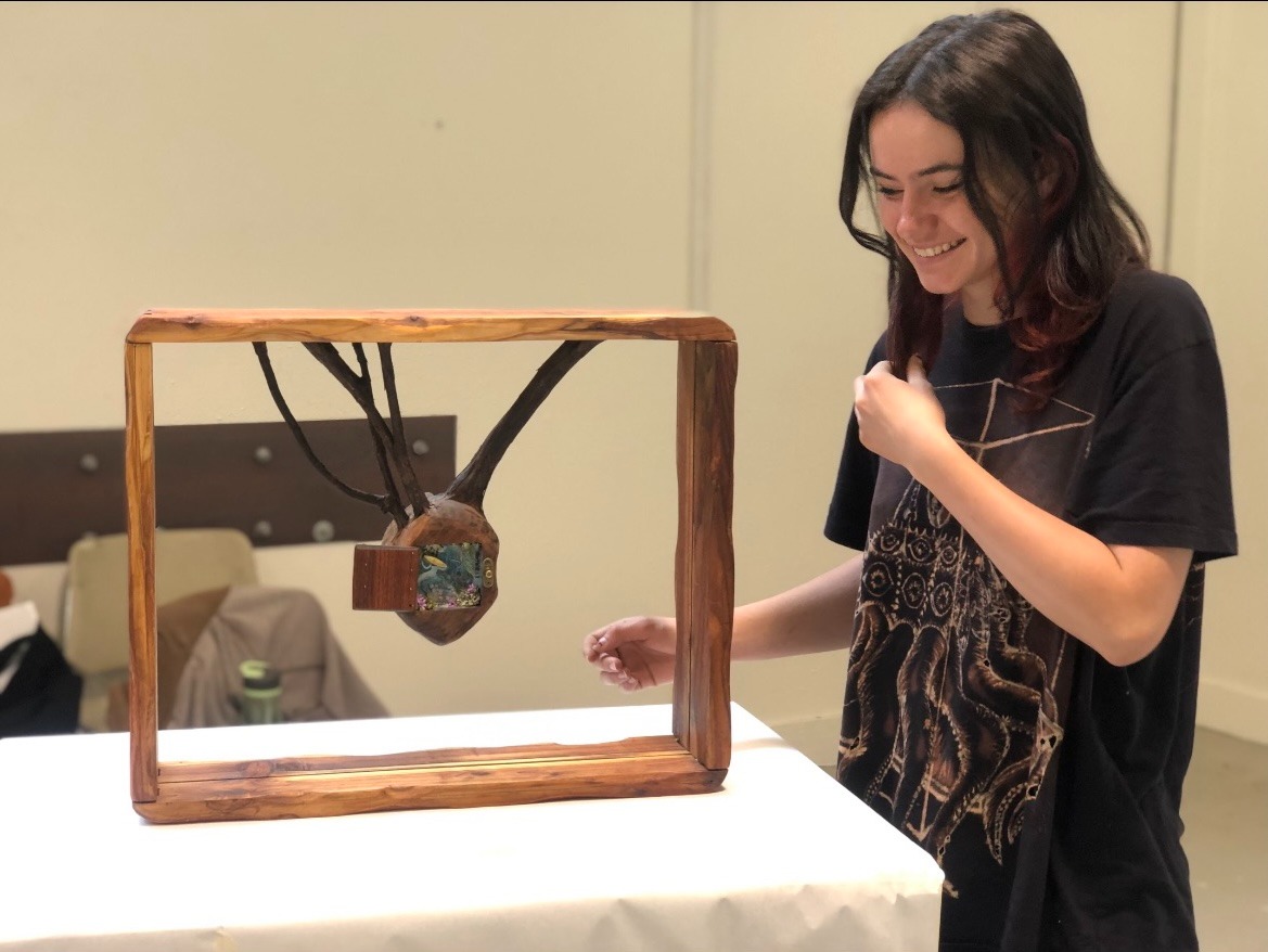 A relative newcomer to the art world, Carolee began seriously developing her artistic practice just two and a half years ago. Working across both two- and three-dimensional media, her work explores materiality, form, and personal narrative. Despite her recent start, her pieces have already been exhibited at the Senson Gallery and the Norris Center. She is also a 2024 recipient of the prestigious Irwin Grant, awarded in recognition of her promising contributions to contemporary art.
