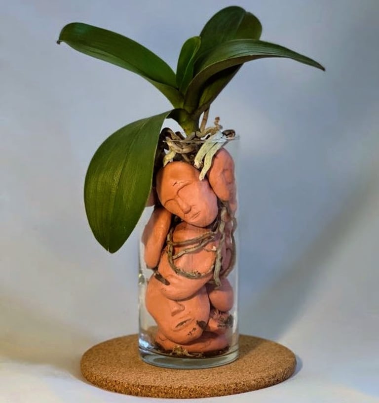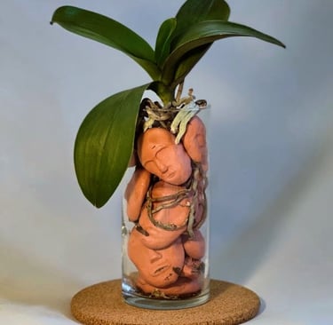 I began to experiment, combining the two, with a background knowledge in urban architecture related to hydroponic systems, I embarked on a journey to create species-specific, aesthetically pleasing, and environmentally friendly displays that have a story behind each design. The piece is designed to accommodate the needs of a singular orchid plant. While successful with both subspecies of orchid, I have found more personal success with those of the Cattleya variety.