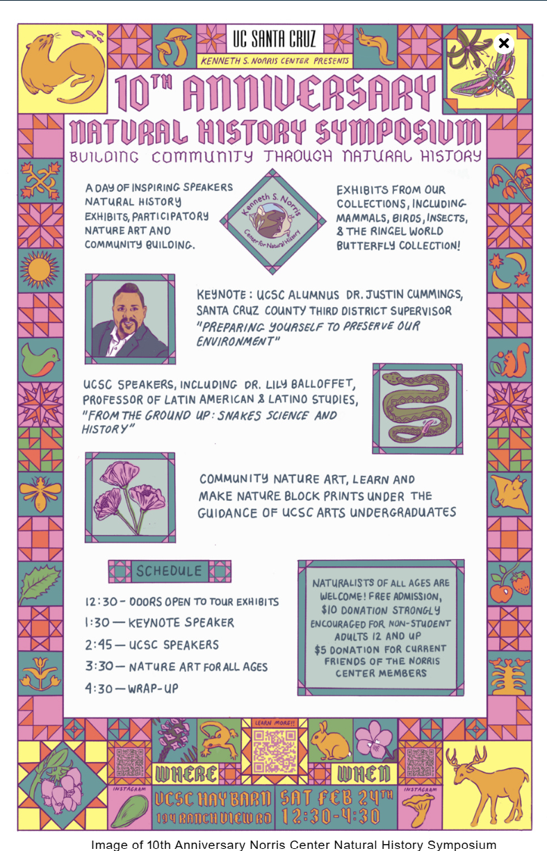 10th Anniversary Natural History Symposium, The Norris Center Art and Research Symposium, 2/28/2024, Ranch View Rd, Santa Cruz, CA 95064